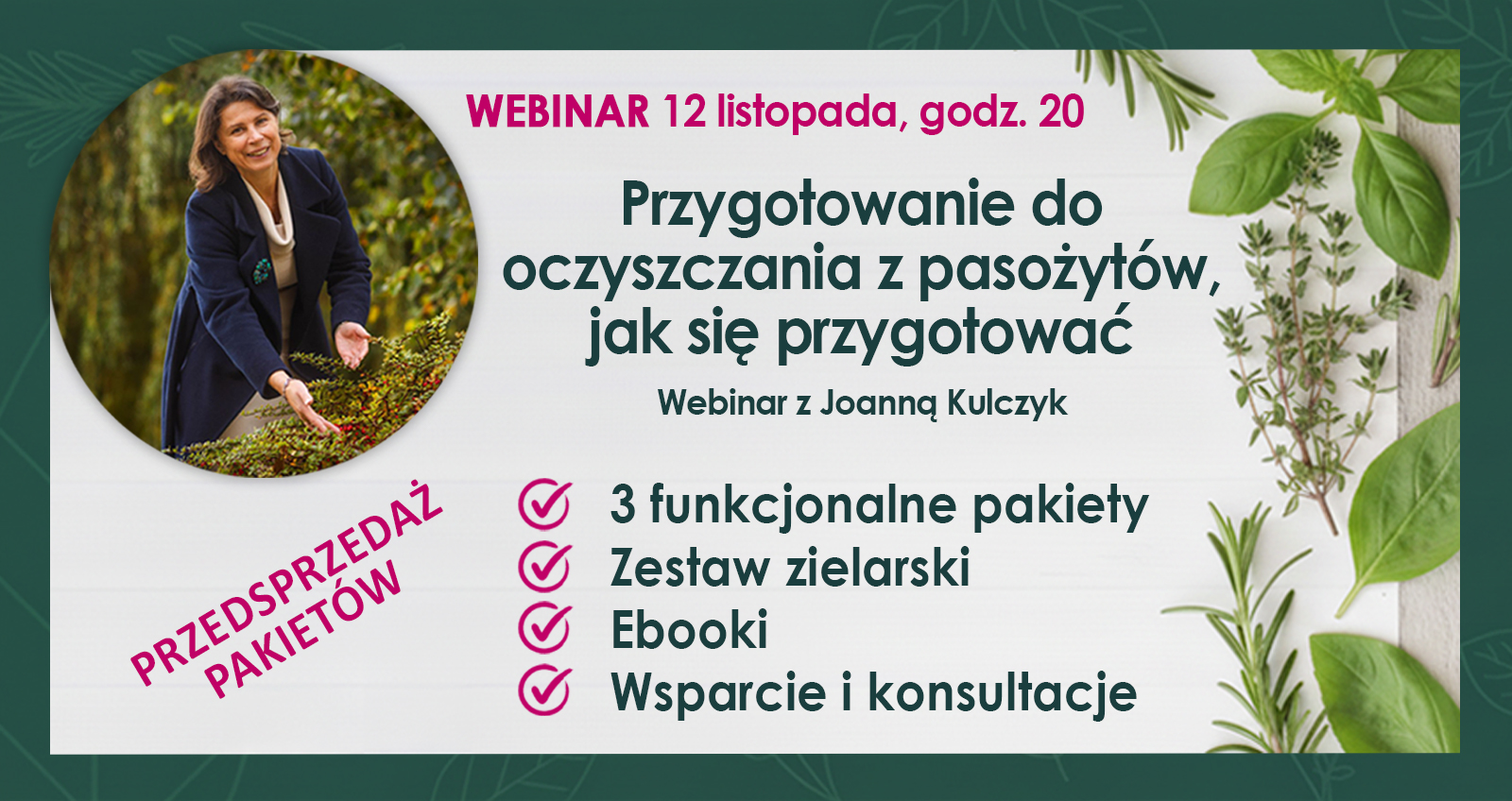👉👉Wyjątkowy bezpłatny webinar o tym jak się przygotować do oczyszczania z pasożytów. Dowiedz się jakie są objawy chorób pasożytniczych – wypełnij ankietę i wesprzyj swój organizm metodami zielarskimi.